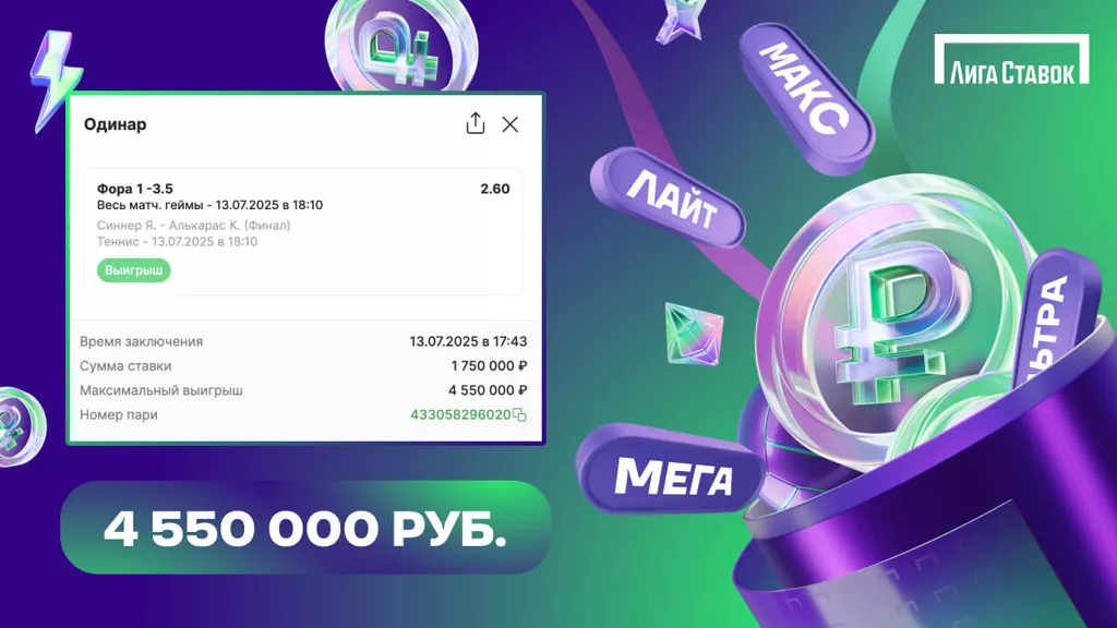 11 июля Лига Ставок определила победителя Джекпота Ультра в рамках федеральной акции Новый Джекпот. Джекпотов стало намного больше. А значит — выросли ваши шансы на победу. Заключайте пари от 100 рублей и автоматически получайте возможность выиграть один из четырех Джекпотов. Акция продлится до 19 сентября. Побеждайте вместе с «Лигой Ставок»!