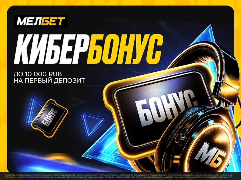 Реклама 18+ Рекламодатель: melbet.ru | Розыгрыш происходит во время участия в азартной игре. Полные правила, информация об организаторе, о призовом фонде, количестве призов или выигрышей, о сроках, месте, и порядке их получения - на сайте melbet.ru. Срок проведения Акции «КИБЕРБОНУС НА ПЕРВЫЙ ДЕПОЗИТ» с 20.08.2025 00:00 (UTC + 3) до 31.05.2026 23:59 (UTC + 3). Срок проведения акции может быть изменен по усмотрению Организатора азартных игр.