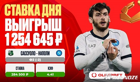 Беттор рискнул поставить 284 500 рублей на Ф2 (-2) на 15-й минуте первого тайма при счете 0:0 с коэффициентом 4.41 и, как оказалось, не прогадал. Поначалу хозяевам поля удалось повести и открыть счет на 17-й минуте матча, однако «Наполи» смогли перехватить инициативу и оформить шесть голов подряд, закончив игру с сокрушительным счетом 6:1. Таким образом, выигрыш беттора составил 1 254 645 рублей.