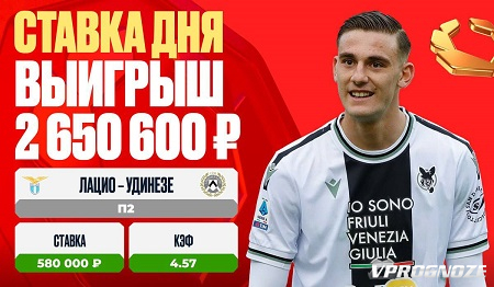 Беттор еще в прематче поставил 580 000 рублей на П2 с коэффициентом 4.57. Гости первыми открыли счет и победили благодаря двум забитым мячам во втором тайме, завершив игру с результатом 2:1. И это несмотря на то, что у черно-белых даже было удаление в концовке матча. Стараниями удинцев беттор увеличил свой выигрыш более чем в четыре раза – до 2 650 600 рублей.