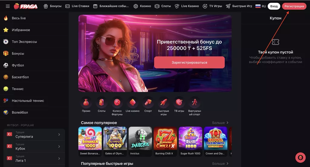Создание учетной записи в FragaBet: