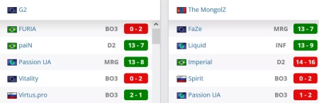 Две победы в последних пяти матчах у команды. Со счетом 13-9 победили Liquid, со счетом 13-7 выиграли у FaZe. На двух картах были слабее Spirit, со счетом 1-2 уступили Passion UA, со счетом 14-16 проиграли Imperial.