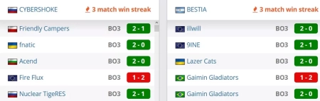 Четыре победы в последних пяти матчах у коллектива. Со счетами 2-0 выиграли у Gaimin Gladiators, illwill и Lazer Cats, со счетом 2-1 победили 9INE. Со счетом 1-2 проиграли Gaimin Gladiators.
