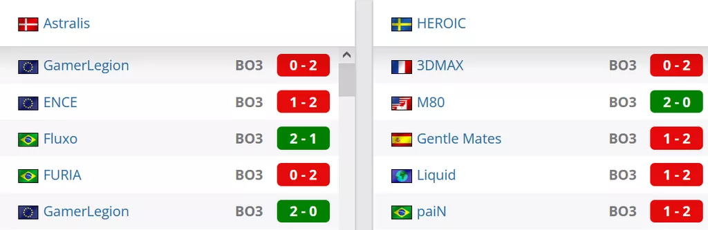 Astralis на сегодняшний день идут на 1 месте в Дании и занимают 12 строчку в мировом Табеле о Рангах. HEROIC на сегодняшний день идут на 1 месте в Швеции и расположились на 18 позиции рейтинга от портала HLTV.