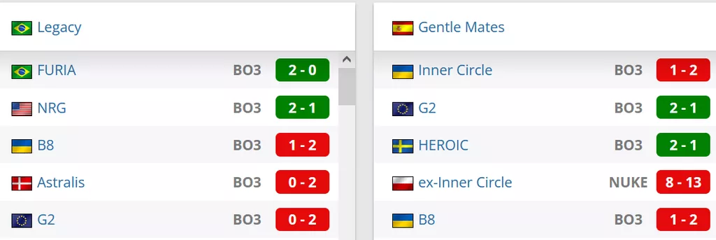 Две победы в последних пяти матчах у коллектива. Со счетом 2-1 победили NRG, на двух картах переиграли FURIA. Со счетами 0-2 проиграли G2, Astralis, со счетом 1-2 уступили B8.