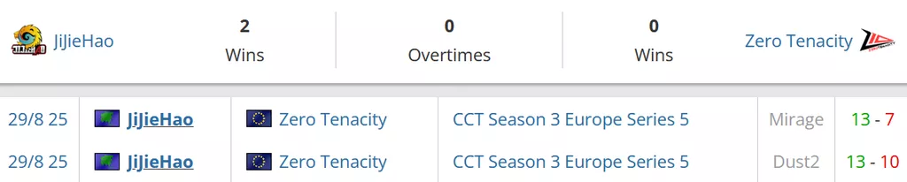 Один раз встречались эти коллективы между собой в конце августа этого года. Тогда на двух картах победили JiJieHao. Забрали парни пик соперника de_dust2 со счетом 13-10, а на своем выборе de_mirage выиграли со счетом 13-7.