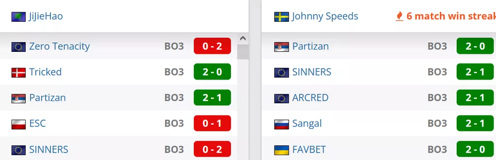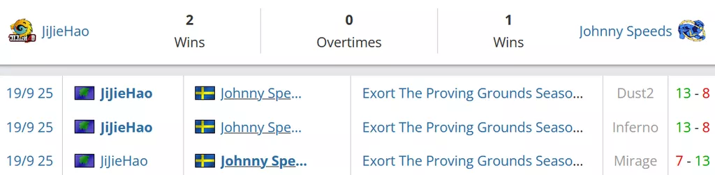 Johnny Speeds на данный момент идут на 4 месте в Швеции и занимают 61 строчку в рейтинге от портала HLTV. JiJieHao на данный момент занимают 84 строчку мирового топа.