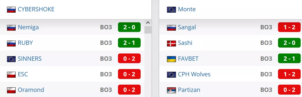Две победы в последних пяти матчах у команды. Со счетом 2-1 переиграли RUBY, на двух картах победили Nemiga. В нули уступили SINNERS, ESC и Oramond.