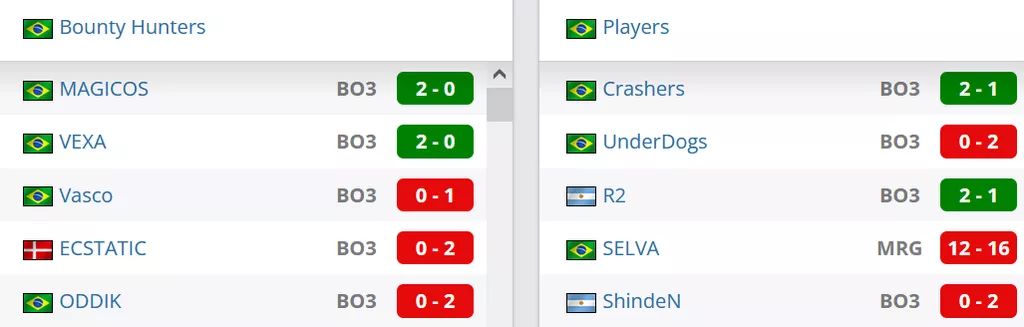 Матч группового этапа. Встречаются две команды из Бразилии Bounty Hunters и Players. Швейцарская система, бо3. Для выхода из группы надо набрать 3 победы, для вылета из турнира надо набрать 3 поражения. Команды идут со статистикой 2-1.