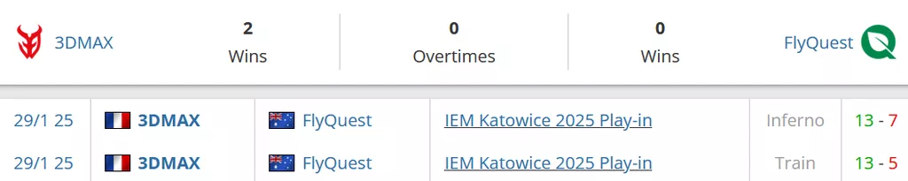- В своем маппуле французский коллектив имеет только 2 карты, где винрейт на отрезке 3 предыдущих месяцев выше, чем у FlyQuest - Nuke (71% против 0% у австралийцев) и Overpass (40% против 33%).