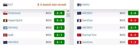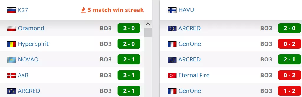 K27 на сегодняшний день занимают 18 строчку в России и идут на 108 позиции в рейтинге от портала HLTV. HAVU на сегодняшний в рейтинге от портала HLTV идут на 173 позиции и занимают 2 место в Финляндии.
