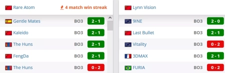 Четыре победы в последних пяти матчах у коллектива. Со счетами 2-1 выиграли у Kaleido, The Huns, Gentle Mates и FengDa. На двух картах уступили The Huns.