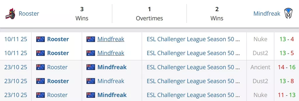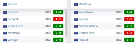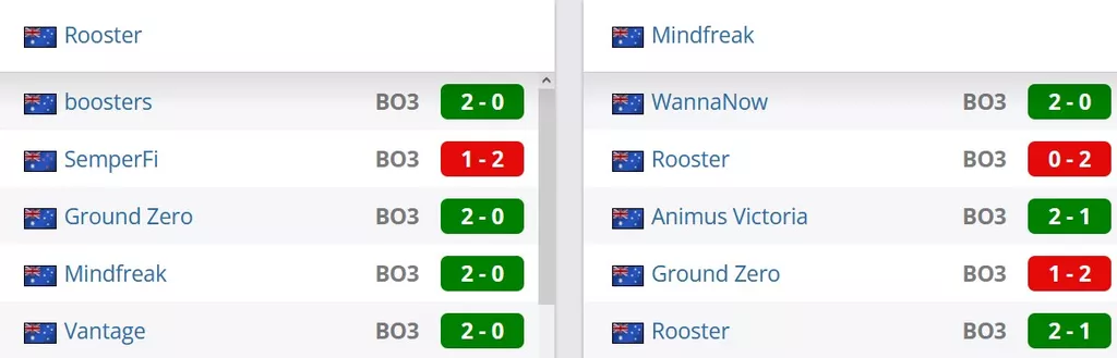 Mindfreak на сегодняшний день идут на 3 строчке в Австралии и занимают 160 позицию в мировом топе. Rooster на сегодняшний день занимают 2 строчку в Австралии и идут на 131 месте в рейтинге от портала HLTV.