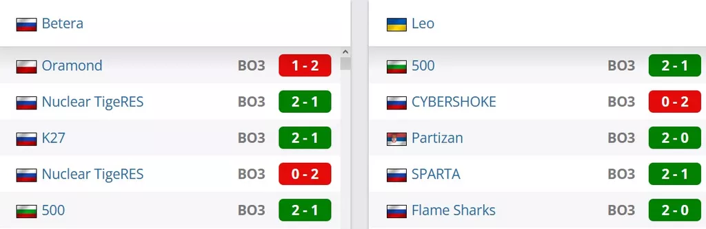 Betera на сегодняшний день идут на 14 строчке в России и занимают 72 позицию в рейтинге от портала HLTV. Leo на данный момент идут на 6 месте на Украине и занимают 112 строчку в рейтинге от портала HLTV.