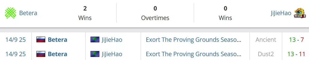 Один раз встречались эти коллективы между собой в середине сентября этого года. Тогда со счетом 2-0 победили Betera. Забрали парни пик соперника de_dust2 со счетом 13-11 и были сильнее на своем выборе de_ancient со счетом 13-7.