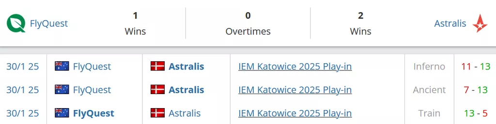 Astralis уступила в 7 из 11 предыдущих BO3 матчей. Беря в расчет эту статистику, а также куда более уверенный мап-пул FlyQuest, предположу, что австралийский коллетив заберет минимум карту в этой встрече.