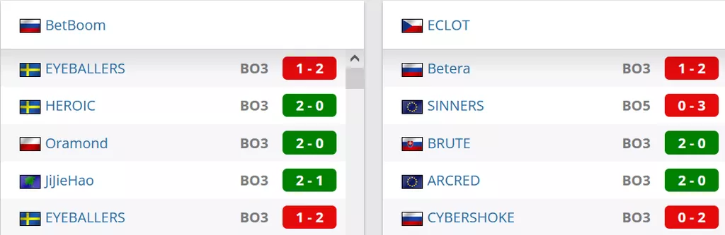 BetBoom на сегодняшний день занимают 4 строчку в России и идут на 31 позиции в рейтинге от портала HLTV. ECLOT на данный момент идут на 1 строчке в Чехии и занимают 80 позицию мирового Табеля о Рангах.