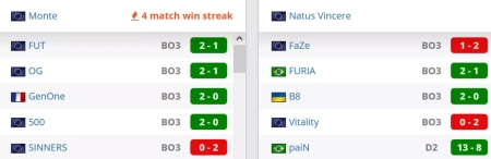 Monte на сегодняшний день занимают 41 позицию в мировом Табеле о Рангах. Natus Vincere на сегодняшний день занимают 7 место в рейтинге от портала HLTV.