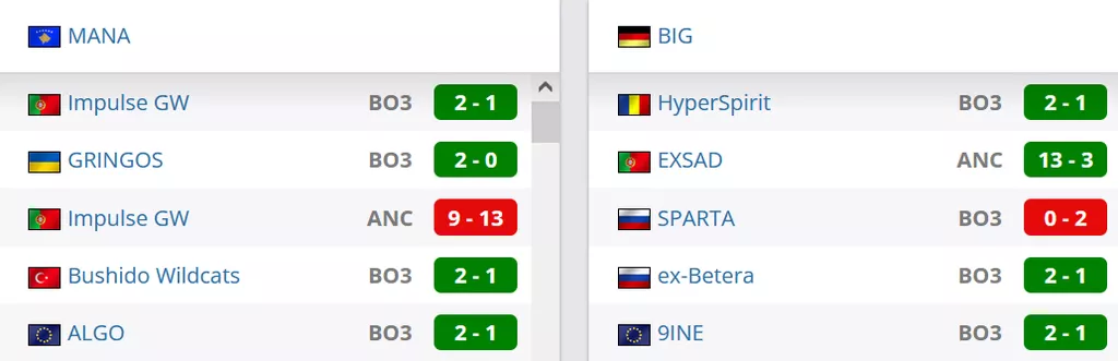BIG на сегодняшний день лучшая команда Германии. В рейтинге портала HLTV коллектив занимает 95 место. MANA на сегодняшний день идут на 1 строчке в Косово и занимают 128 позиции в мировом топе.