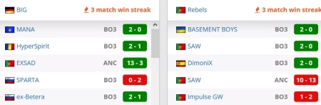 Четыре победы в последних пяти матчах у команды. Со счетами 2-1 выиграли у ex-Betera и HyperSpirit, на двух картах переиграли MANA, со счетом 13-3 победили EXSAD. Со счетом 0-2 уступили SPARTA.