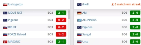 Две победы в последних пяти матчах у коллектива на данный момент. Со счетами 2-1 выиграли у MASONIC и MOUZ NXT. Со счетом 1-2 уступили FORZE Reload, на двух картах проиграли BRUTE и Pigeons.