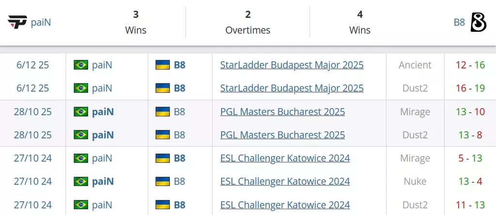 Три раза за последние два года встречались эти коллективы между собой. Счет 2-1 в пользу B8. Общий счет по картам 4-3 в полььзу украинцев. Последний раз команды играли между собой в начале декабря прошлого года, тогда со счетом 2-0 победили B8.
