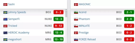 Первый раунд плей-офф. Бо3 формат. Встречаются две команды из Дании Sashi и MASONIC. Победитель этого матча сыграет в четвертьфинале турнира против команды из Польши Oramond, а проигравший коллектив покидает этот чемпионат.