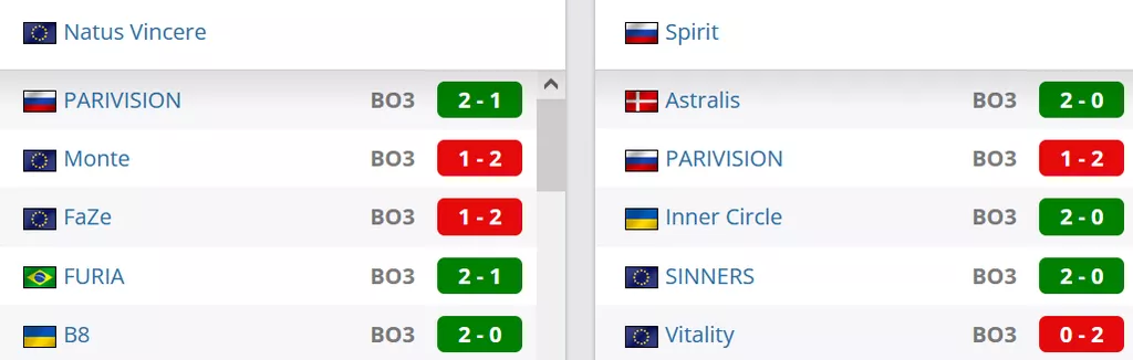 Natus Vincere на сегодняшний день занимают 7 место в рейтинге от портала HLTV. Spirit на сегодняшний день занимают 1 строчку в России и идут на 8 месте в рейтинге от портала HLTV.