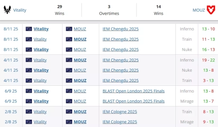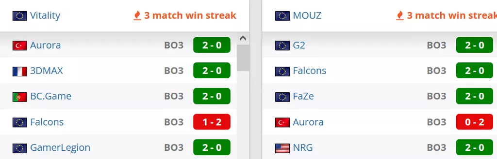 Vitality на сегодняшний день идут на 1 строчке в рейтинге от портала HLTV. MOUZ на сегодняшний день занимают 4 строчку в рейтинге от портала HLTV.