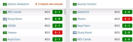 Второй раунд верхней сетки. Встречаются две команды из Бразилии Gaimin Gladiators и Bounty Hunters. Победитель этого матча сыграет в четвертьфинале верхней сетки против сильнейшего из пары Sharks/UnderDogs, а проигравший коллектив упадет в нижнюю сетку.