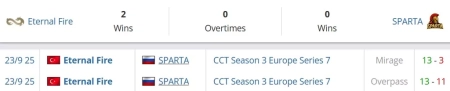 Eternal Fire на сегодняшний день занимают 2 место в Турции и идут на 105 строчке в рейтинге от портала HLTV. SPARTA на сегодняшний день занимают 18 строчку в России и идут на 104 позиции в рейтинга от портала HLTV.