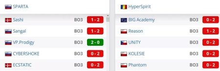 Один выиграли парни из пяти последних. Со счетами 2-0 выиграли у VP.Prodigy. В нули уступили CYBERSHOKE и ECSTATIC, со счетами 1-2 проиграли Sangal и Sashi.