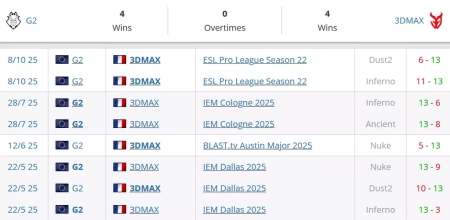 3DMAX на сегодняшний день лучшая команда Франции. В рейтинге от портала HLTV коллектив занимает 10 строчку. G2 на сегодняшний день занимают 8 строчку в рейтинге от портала HLTV.