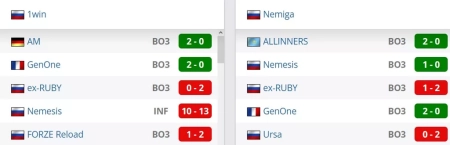 Две победы в последних пяти матчах у команды. Со счетами 2-0 выиграли у GenOne и AM. Со счетом 0-2 уступили ex-RUBY, со счетом 10-13 проиграли Nemesis, со счетом 1-2 были слабее FORZE Reload.