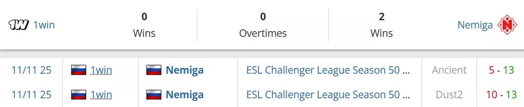 Nemiga на сегодняшний день идут на 11 строчке в России и занимают 78 позицию в рейтинге от портала HLTV. 1WIN на сегодняшний день идут на 16 месте в России и занимают 87 позицию в рейтинге от портала HLTV.