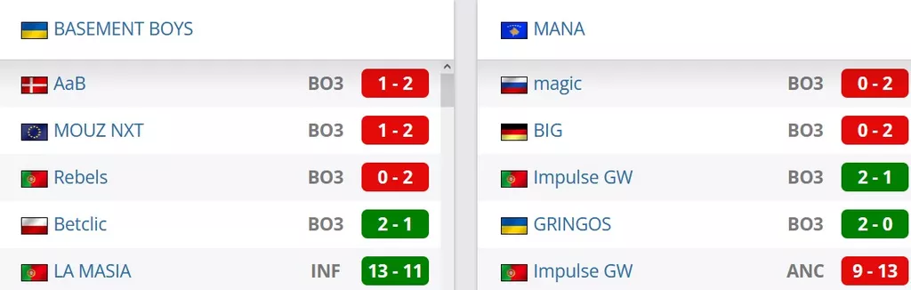 Три победы в последних пяти матчах у коллектива. Со счетами 2-1 победили BIG Academy, K27 и M80. Со счетом 1-3 проиграли NRG, со счетом 0-2 уступили FURIA.