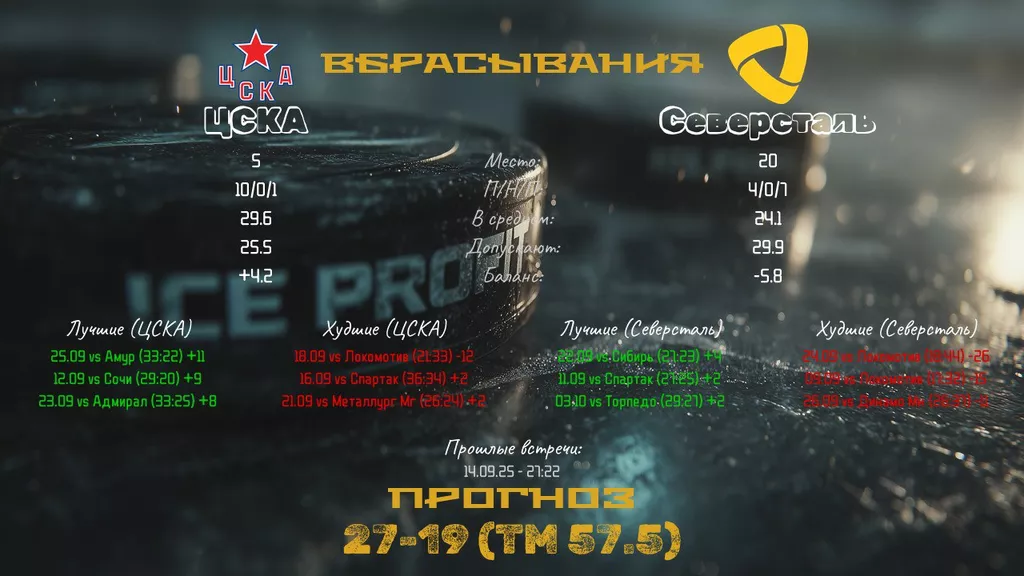 Прогноз и ставка на матч ЦСКА (выиг. вбрасывания) - Северсталь (выиг. вбрасывания)