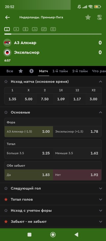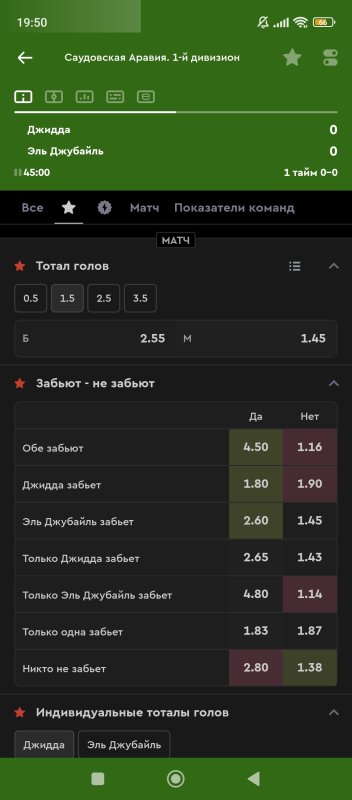Голы в обоих таймах