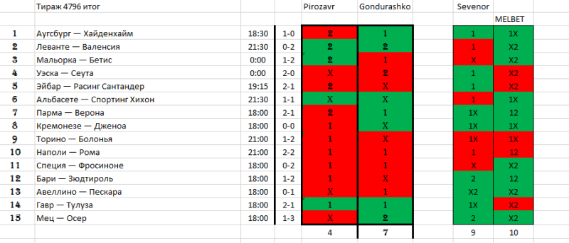 конечно. разок 2/3, а потом 0/3. у одного 2/3, у другого 0/3Тяжело это, даже 10/15 уже непросто, слишком уж матчи тяжёлые в тото пихают