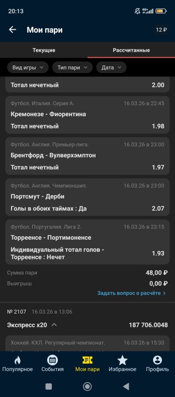 Выигрыши с огромными кэфами происходят чаще, чем по теории вероятностей. Это научный факт. Парадокс, но факт. Одно только чемпионство Лестера чего стоит. А таких случаев много. Не просто так же в Марафоне стояло ограничение не более 20 событий в паровоз и не более одного точного счета. У нас два лудика играли между собой. Ставили друг другу паровозы по 40-50 событий на 1 рубль. Все смеялись. Но однажды случилось так, что у одного из этих лудиков не зашло только одно событие. Лично у меня был выигрыш паровоза с кэфом 760 с хвостиком. Я уже писал что тут работает парадокс. Так что ничего невозможного нет. Удивительно другое. Как банк не заблокировал карту?