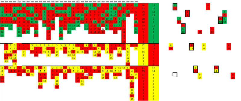 Без обид, но это рисование. Одни чуваки скриншоты купонов послегольные рисуют, а здесь то же самое, только в завуалированной форме. Вместо купонов раскрашенные матрицы и графики.Графический анализ матрицы. Слева матрица последних тиражей. Справа мои вчерашние паровозики. Обведены жирным паровозики которые сыграли. 8 зашло и 8 сгорело. Итог: +50,8%