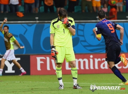 Но до перерыва Голландия смогла сравнять счет. Один на один с Касильясом вышел Ван Перси, с ударом которого, испанский голкипер справиться не смог.
