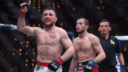Российский чемпион UFC в лёгком весе Ислам Махачев победил в титульном бою Ренато Мойкано, а Умар Нурмагомедов уступил Мерабу Двалишвили.