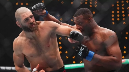 Бой Грузинского Ледокола Мераба Двалишвили с представителем легендарного клана Умаром Нурмагомедовым оказался хорошенько разогрет крепкими словами бойцов в адрес друг друга. Нурмагомедов начал прессинговать с первой минуты и подключал жесткие удары с левой. Мераб отстреливался, но не шел в борьбу. От лоу-киков россиянина грузин получил приличный урон своей ноге.