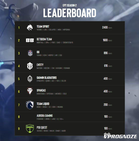 Второй сезон EPT начался с DreamLeague Season 21, поэтому участники того турнира уже получили очки в зависимости от их результатов. При этом, к примеру, Shopify Rebellion, дошедшая до финала соревнования, потеряла все баллы, так как команду покинули три участника прежнего состава.