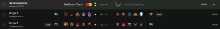 Первая карта еще раз доказала, насколько же важно понимание патча, потому что в этот раз Xtreme Gaming почти повторили свой пик из второй карты второго раунда сетки лузеров, вот только оппонент в этот раз был другой. И уже сейчас Ursa, все-таки победил данный китайский коллектив. И пусть вас не смущает более 50 минут, там по факту после 20 минут все было решено и BetBoom Team спокойно довели первую карту до победы, ни на секунду не появилось ощущение, что данный коллектив из Восточной Европы вообще может проиграть, а вот Xtreme Gaming вновь проиграли первую карту в серии, что уже было в этот игровой день.
