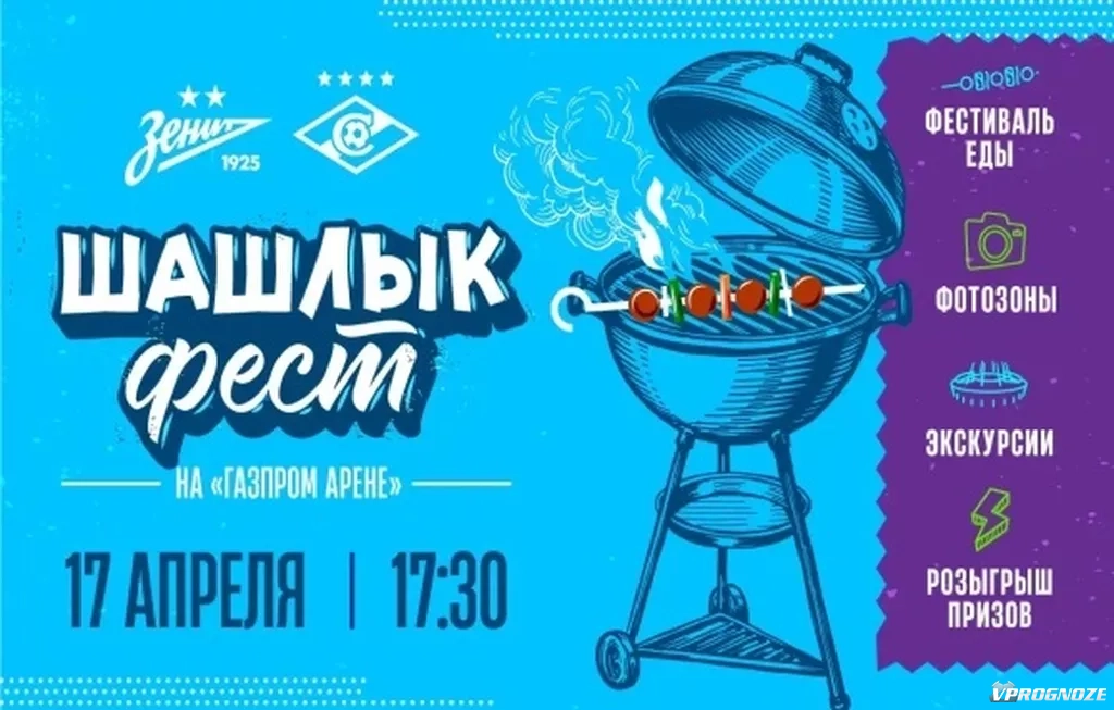 Петербургский «Зенит» объявил о специальной программе развлечение перед предстоящей встречей с московским «Спартаком» в Кубке России, сообщает официальный сайт клуба. Главным событием в программе мероприятий станет «Шашлык-фест», в рамках которого болельщики смогут попробовать мясные блюда, приготовленные на открытом огне.