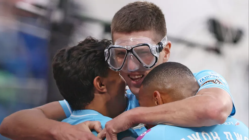 Нападающий «Зенита» Александр Соболев отметил гол в ворота «Спартака» необычным способом, надев плавательную маску во время празднования.