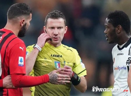 Судья Марко Серра не сдержал эмоций, после допущенной ошибки в матче 22-го тура чемпионата Италии между «Миланом» и «Специей» (1:2)