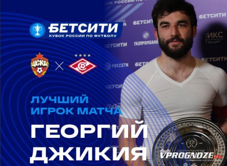 Георгий Джикия признан лучшим игроком матча 1/4 финала БЕТСИТИ Кубка России между ЦСКА и «Спартаком» (0:1).